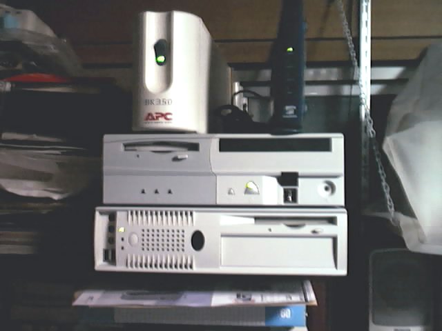 標準でUPS抱いてるようなもんだし、キーボードも液晶もついてる。おなじこと19インチキャビネットでやったらン万はするシステムだ。(笑)